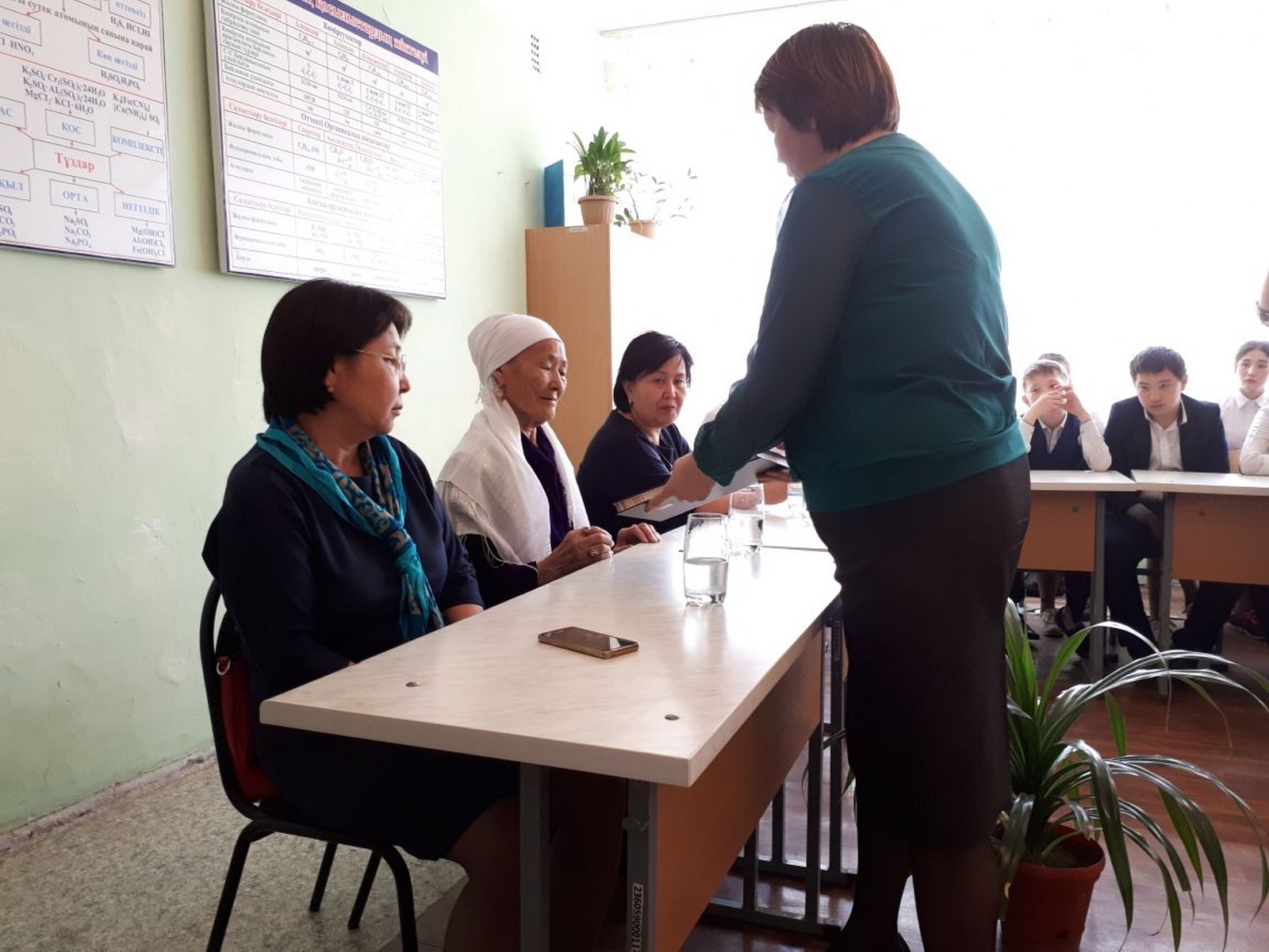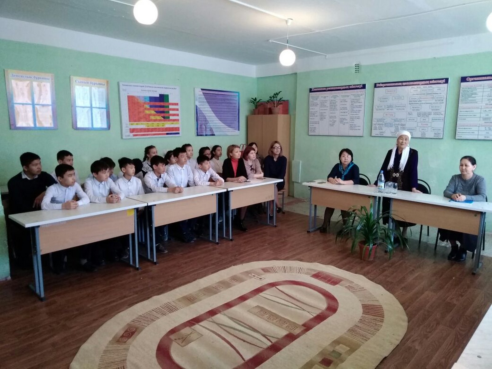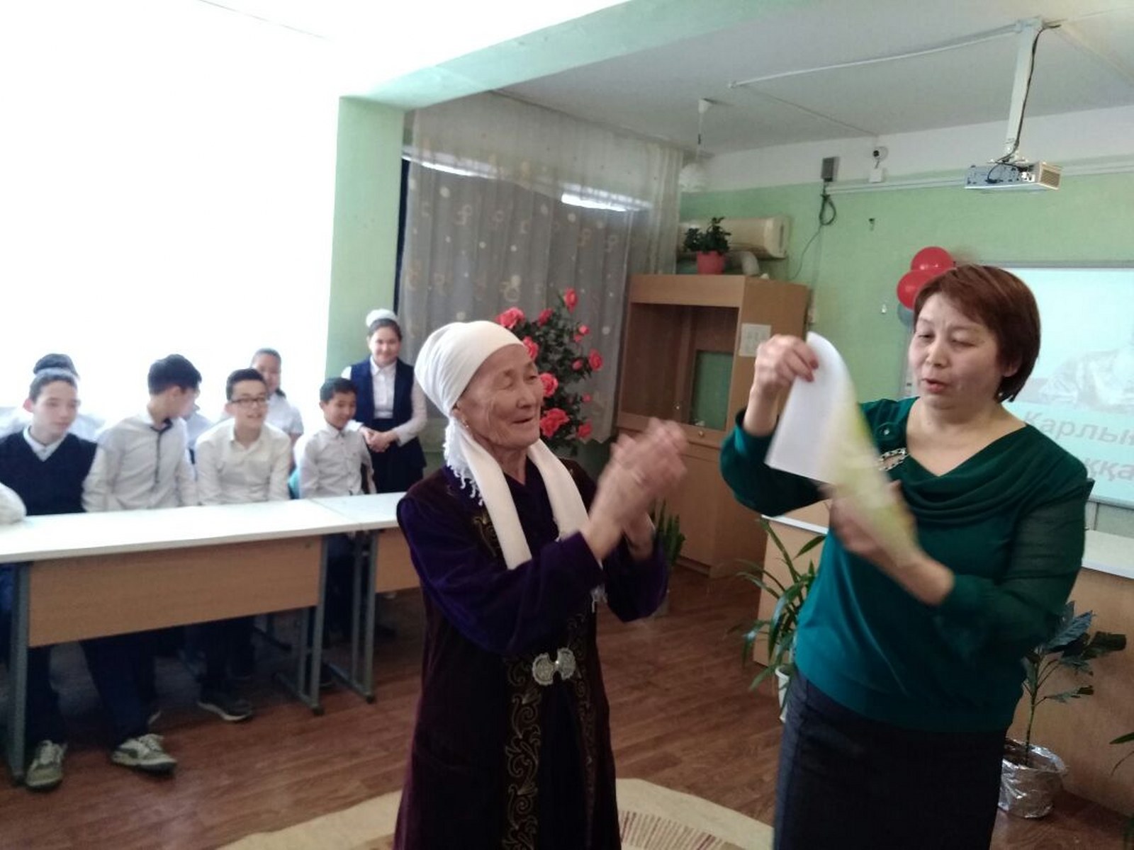 «Біз еңбекті бағалаймыз» 8г, 8д сыныптары еңбек ардагері Қайраққалиева Қарлығаш әжемен кездесті. 20.04.2018 ж.