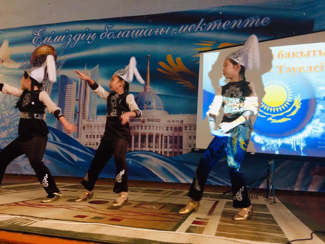 «Елімнің бақытын тербеткен – Тәуелсіздік» күніне арналған концерттік шара өтті. Шараның мақсаты Балалардың өздерінің туған жеріне деген сүйіспеншілігін ояту, өз елінің патриоты болуға, ел егемендігін сақтай білуге, елінің кірпіші болып қалануға баулу болды. Тәуелсіздік күніне арналған ашық шаралар мектебіміздің әр сыныбында өткізілді.