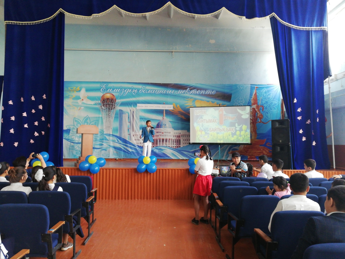 «Ынтымақ, бiрлiк, келiсiм – ең басты байлық ел үшін» тақырыбында мектебімiз бойынша салтанатты жиын өтті. Мерекелік салтанатты жиынымыздың басты мақсаты: оқушыларға Қазақстан Республикасы әлемде ең алғашқы мемлекеттердің бірі болып сырттан келген басқа ұлт өкілдеріне алтын бесік болғандығын ұғындыру. Қазақстандық патриотизмге, елiн, жерiн сүюге және халқын құрметтеуге тәрбиелеу.