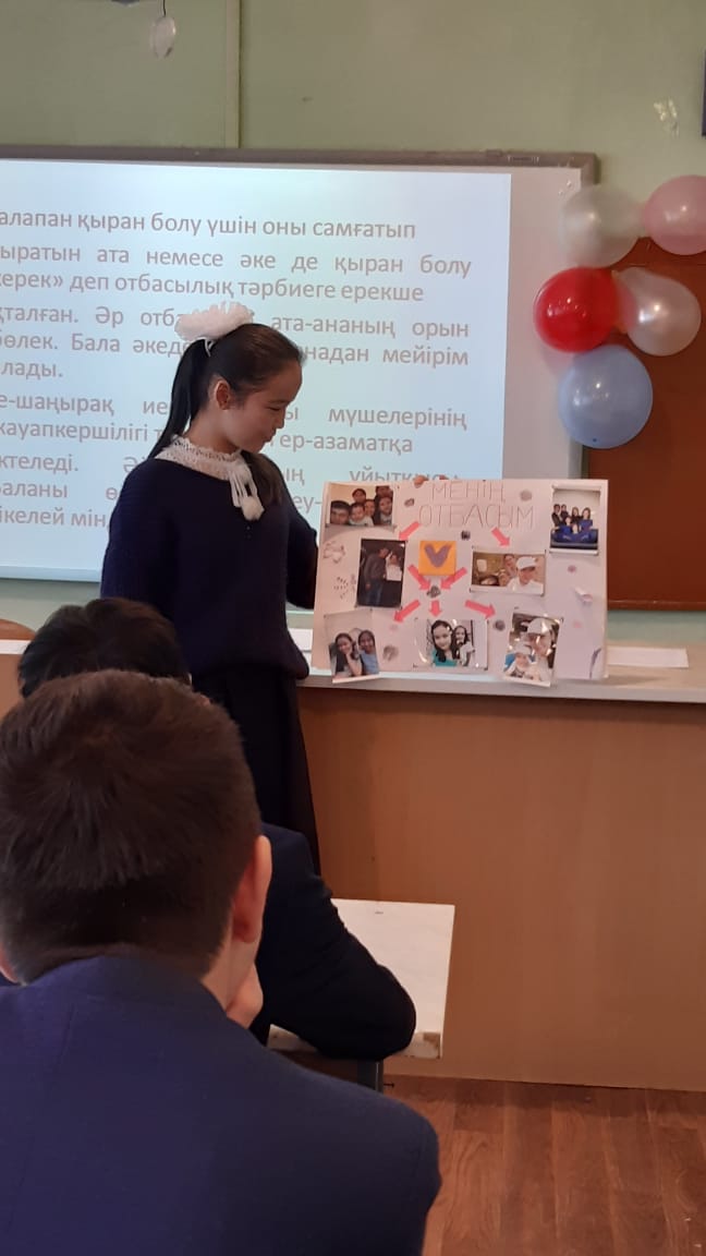 1 – 4 сыныптар арасында «Менің жанұям», «Менің отбасым – ең үздік» атты фотосуреттер көрмесі, 5 - 8 сыныптар арасында «Менің отбасымның тарихы», «Менің отбасымның фотосуреттердегі тарихы» атты фотокөрмесі, отбасылық құндылықтар туралы әңгіме сабақтар мен диспуттар өтті. 9 – 11 сыныптар арасында «Менің шежірем», «Отбасының рухани құндылықтары» атты өз отбасылары туралы, жалпы отбасы құндылықтары әңгіме – презентация өтті. Сонымен бірге «Мен елімнің ертеңімін» атты республикалық бірыңғай сынып сағаттары өтті.