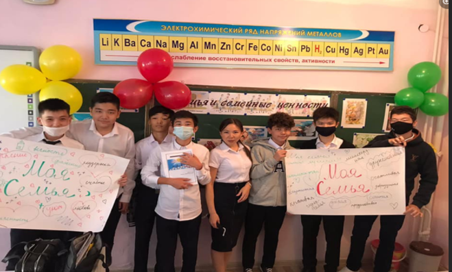 Жылыой ауданы білім бөлімінің 2021 жылдың 19 тамызындағы 04-04-07-01/2012 санды хатына сәйкес №18М.Сатыбалдиев атындағы жалпы орта білім беретін мектеп бойынша отбасы күнін өткізуге арналған іс - шаралар жоспары жасақталды. "Отбасы - бақыт мекені" тақырыбындағы іс-шаралар жоспарына сәйкес 9 "а" сыныбының сынып жетекшісі Артигалиева Мөлдір Ергенгалиева "Семья и семейные ценности" тақырыбында пiкiр алмасу сабағын өткізді. Оқушылар сабаққа белсене қатысып, өз ойларын топқа бөлінiп, қағазға презентация жасап қорғады.