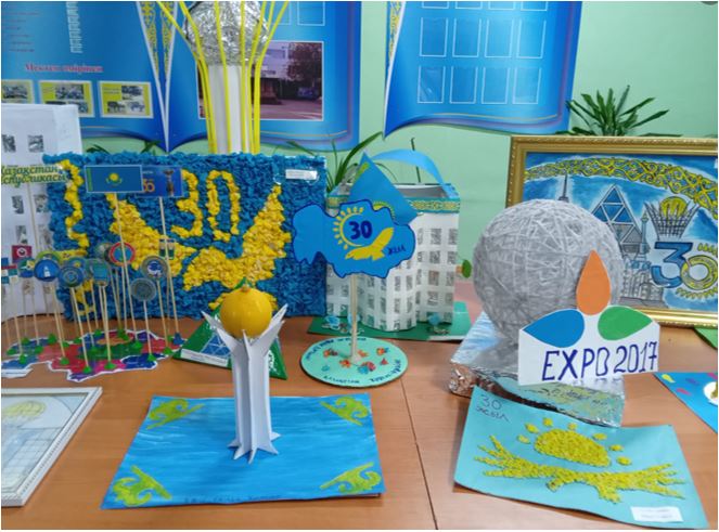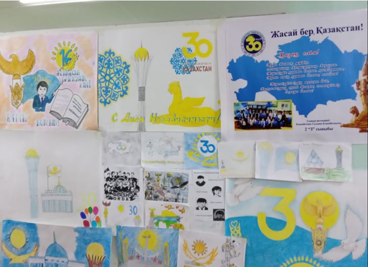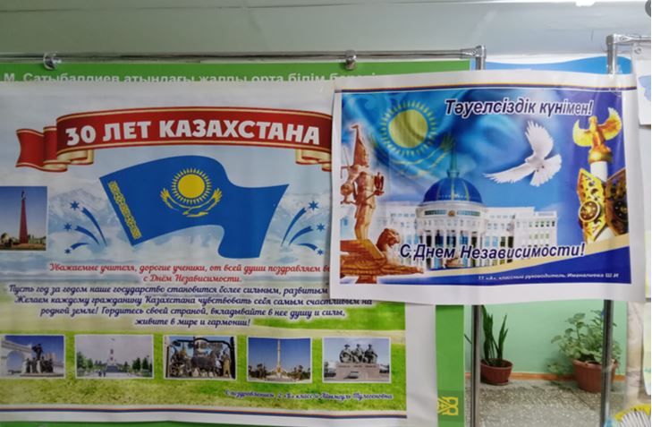 №18 М.Сатыбалдиев атындағы жалпы орта білім беретін мектепте Тәуелсіздіктің 30 жылдығына орай Ш/О МАД, 1-сыныптарда сурет көрмесі, 2-сыныптар банер (плакат) жасау, 3-сыныптарда қолөнер, макет жасау, 10-11 сыныптарда банер, плакат түрінде суреттер көрмесі ұйымдастырылып, үздік шыққан жұмыстар жүлделі орындарды иеленіп, диплом және алғыс хаттармен марапатталды.